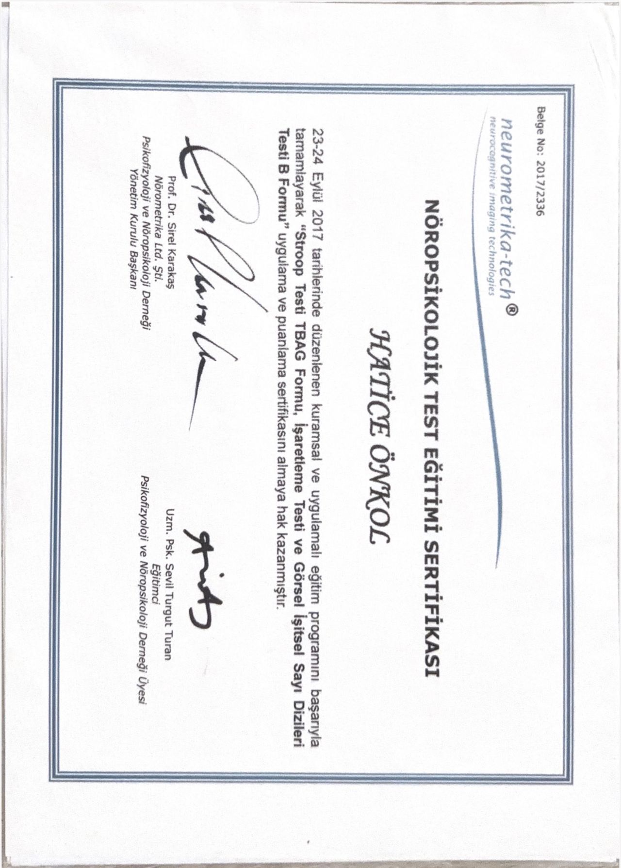 • Dikkat Testleri (Psikofizyoloji ve Nöropsikoloji Derneği, 2017)
